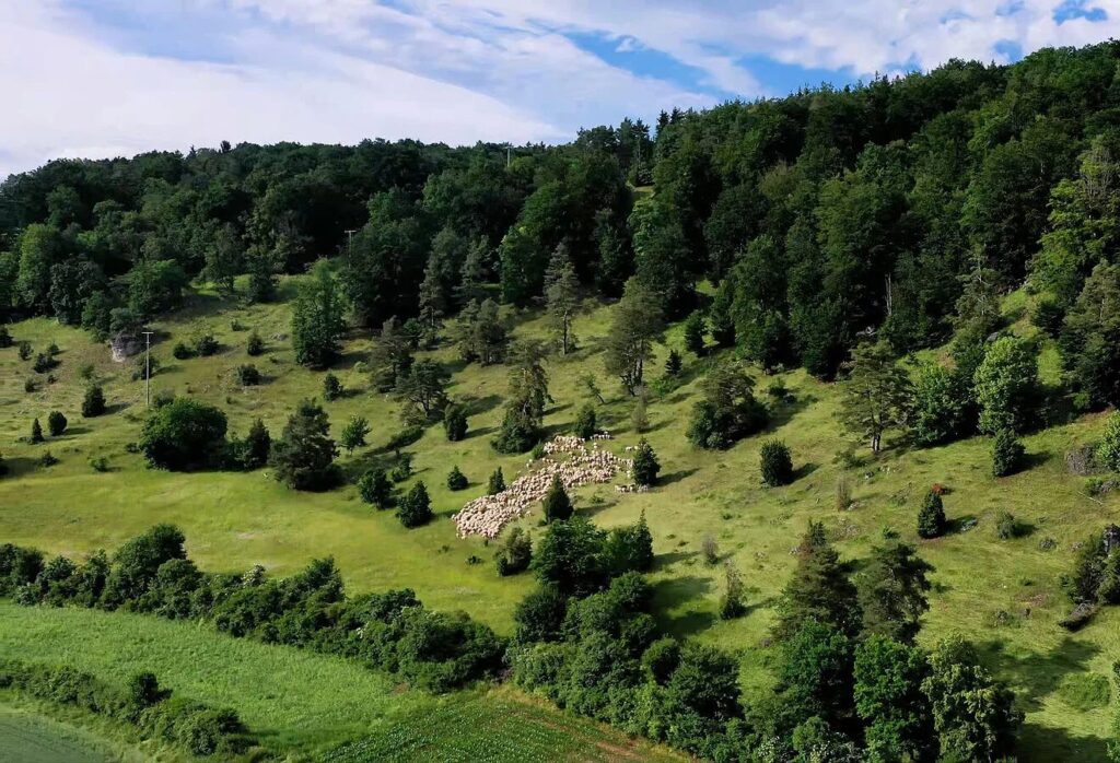 De jeneverbesheide, of correcter gezegd de kalkarme graslanden (Kalkmagerrasen), vormen hier een bepalend onderdeel van het landschap. In de middeleeuwen werden deze gebieden ontgonnen. Dankzij een extensieve begrazing, onder andere met schapen en geiten, wordt voorkomen dat ze opnieuw bebossen.