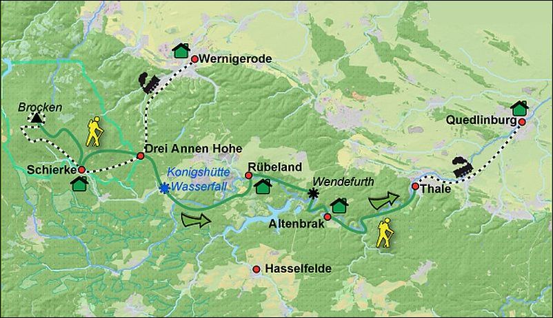 - en tenslotte terug naar Bf Drei Annen Hohne en Königshütte. (Bf = Bahnhof)