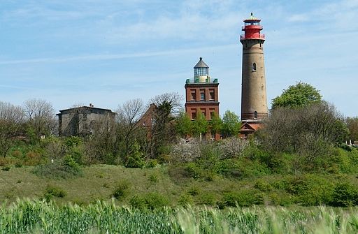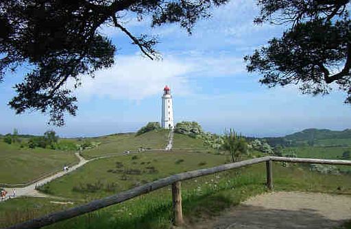 Der Leuchtturm auf dem Dornbusch ist weithin sichtbares Wahrzeichen (=markant object) von Hiddensee.