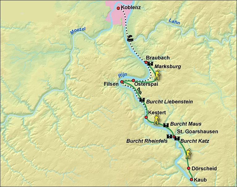 | 2 | Braubach.–.Kamp.Bornhofen | 22km | 5½uur | ↑620m |
