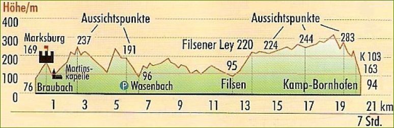 | 3 | Kamp.Bornhofen.–.St.Goarshausen | 20km | 6.uur | ↑690m |