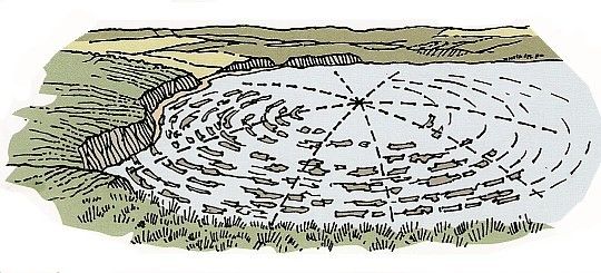 If you measure the slope of the beds on the wave-cut platform, and sketch their continuation upwarts, you can see the shape of the dome.