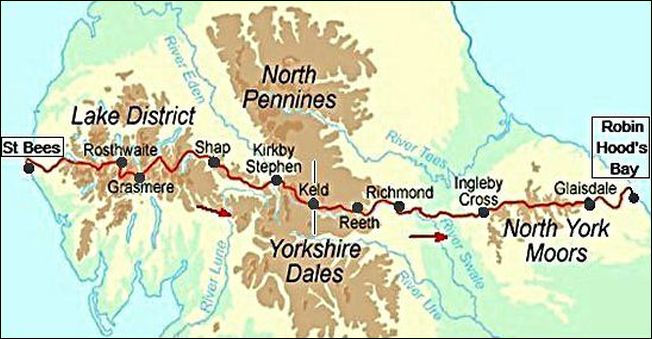 Terwijl de meeste paden door een groep mensen gemaakt zijn, is de Coast to Coast Walk het werk van één man: Alfred Wainwright (AW). Deze bekende wandelgidsjesschrijver had begin jaren 70 de Pennine Way, gelopen en die route was hem niet goed bevallen. Hij wilde daarom zelf een interessanter en gevarieerder route maken over veel vriendelijker terrein. Zo’n traject vond hij tussen St Bees (aan de Ierse Zee) en Robin Hood’s Bay (aan de Noordzee).